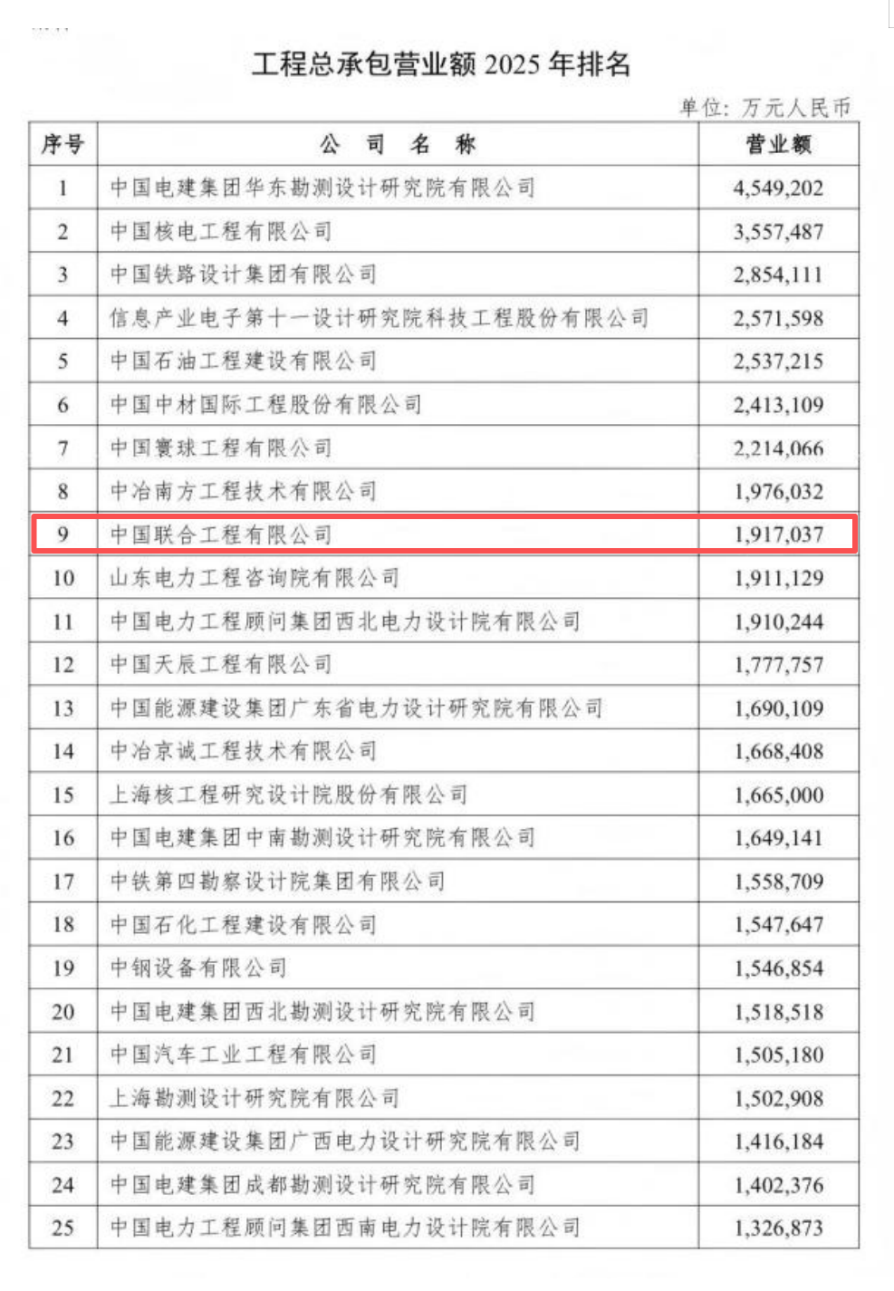近日,中國勘察設計協會正式發布2025年度勘察設計企業工程項目管理與工程總承包營業額排名榜單,中國聯合工程有限公司憑借卓越的業績表現實現雙榜躍升:工程項目管理營業額排名全國第六,較上年度前進一位;工程總承包營業額排名全國第九,同樣提升一位。這一成績的取得,標志著中國聯合在“十四五”收官之年交出了一份高質量發展的答卷,也為“十五五”戰略布局奠定了堅實基礎。